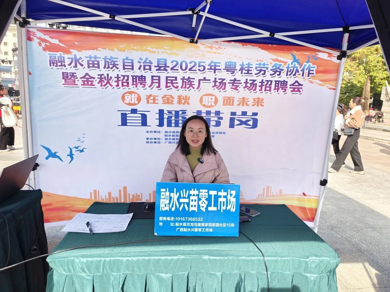 金秋送爽,求职正当时。县人力资源和社会保障局、粤桂协作办公室于11月18日晚和11月21日上午分别在县体育公园、县民族广场举办“融水苗族自治县2025年粤桂劳务协作暨金秋招聘月专场招聘会”活动。用“双向奔赴” 的招聘盛宴,为金秋就业季注入满满活力。