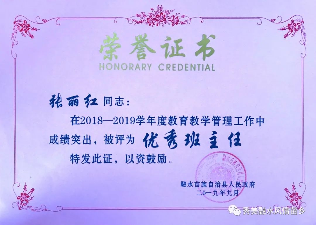 因为有了爱和喜欢,张丽红上课总是充满了热情。她仔细备课、认真钻研业务,学习新课标及现代新的教学方法。课后及时批改作业,耐心辅导学生,对学生严而有度,用爱与学生沟通。既是学生们信赖的教师,又成为她们亲密的好朋友。从教3年,张丽红就当了3年班主任,曾荣获2018-2019年度教育教学管理工作优秀班主任、2019年中学教师课堂教学竞赛一等奖等。期间,她不断鼓励、指导学生参加各类比赛并赢得名次,她也先后荣获国家级、区级、市级以及融水级等多项指导奖。