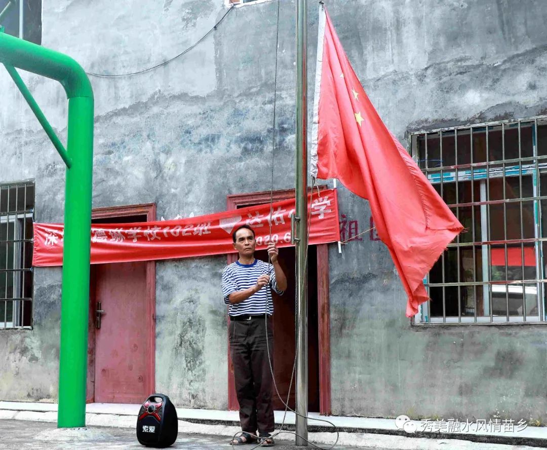 ▲伴随着音乐,周宏军正在缓缓升起国旗。