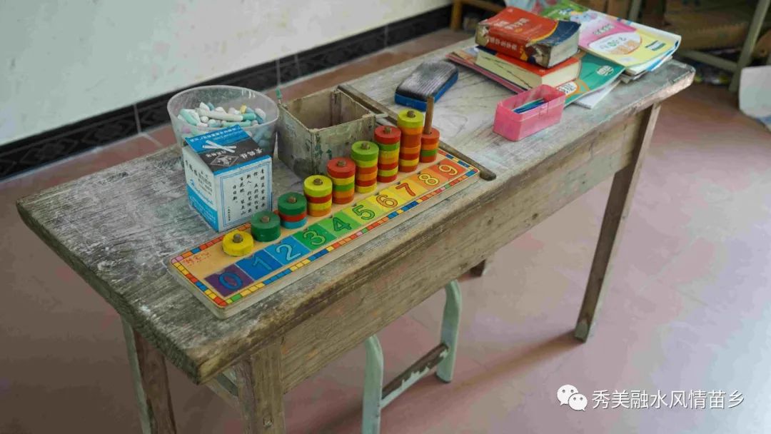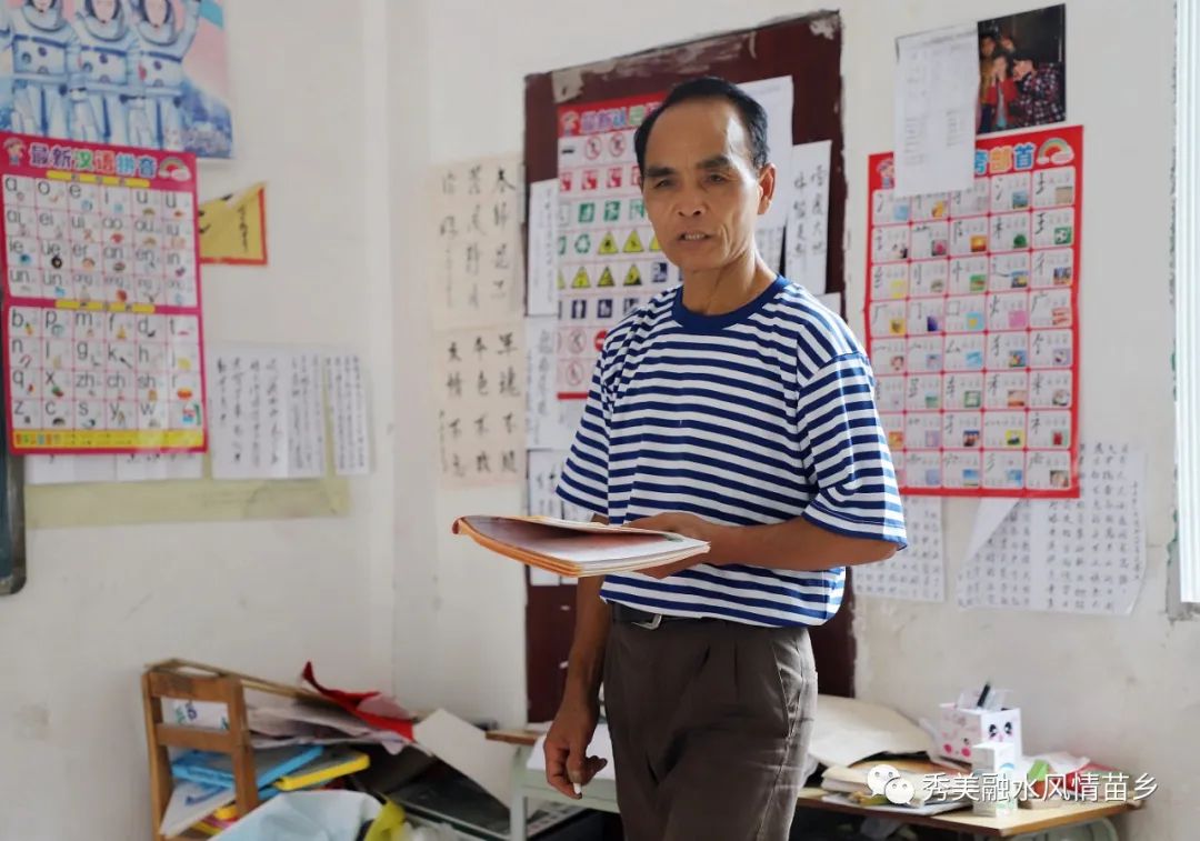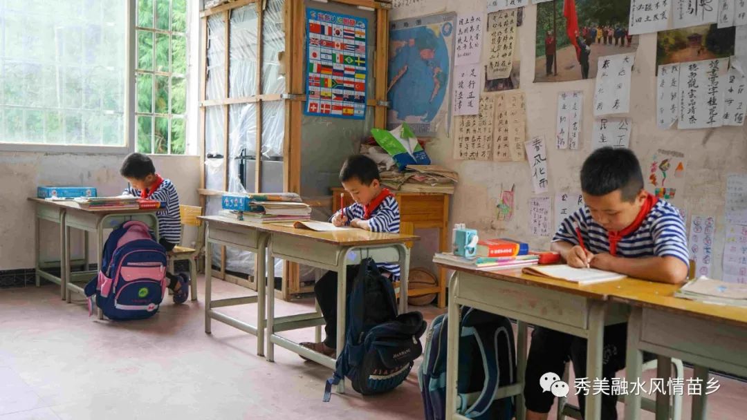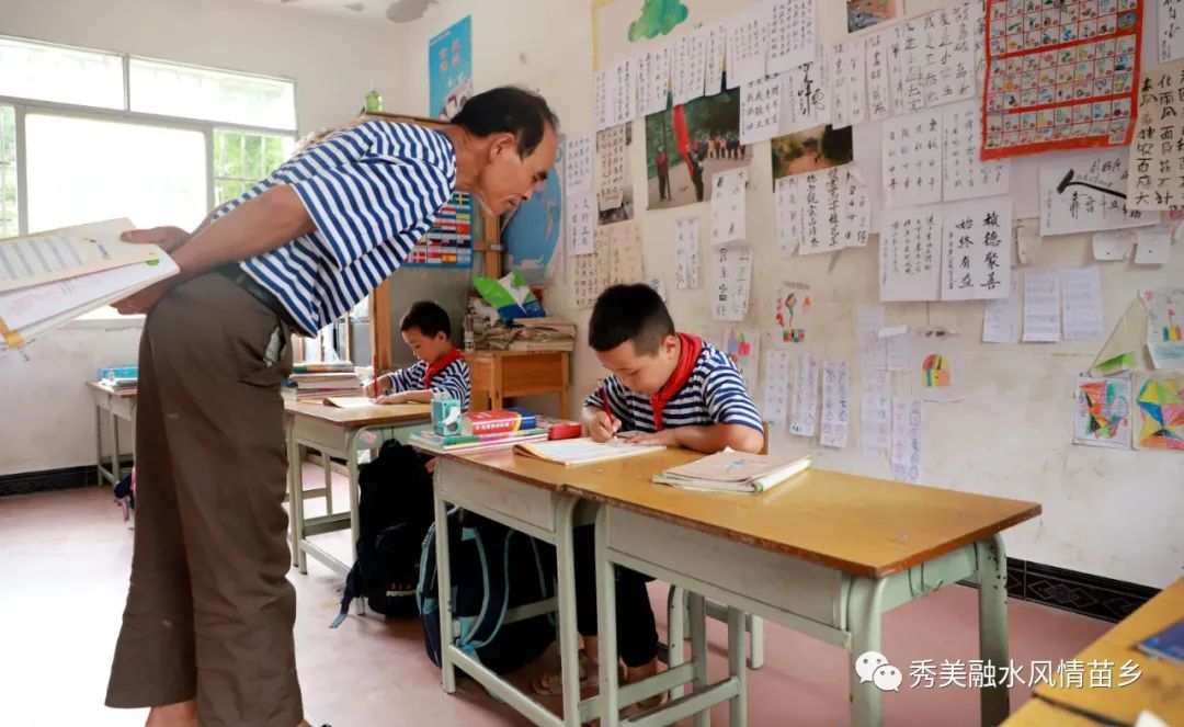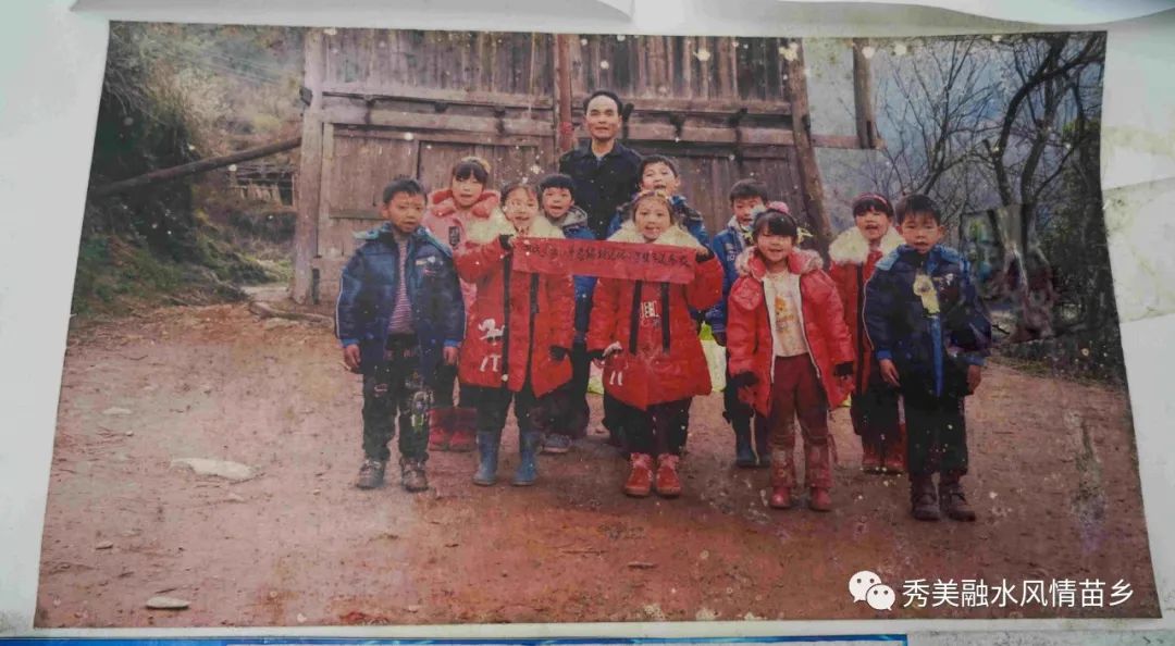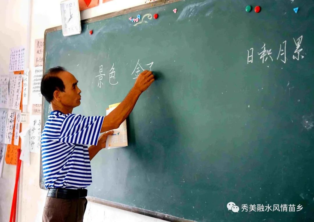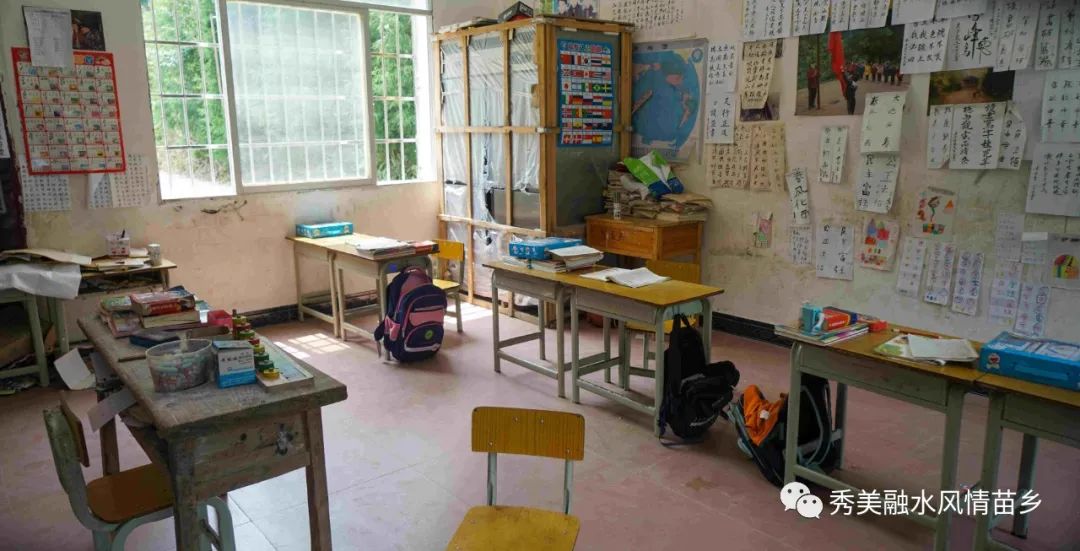 ▲学校的灰墙上是周宏军老师手写的宣传标语。