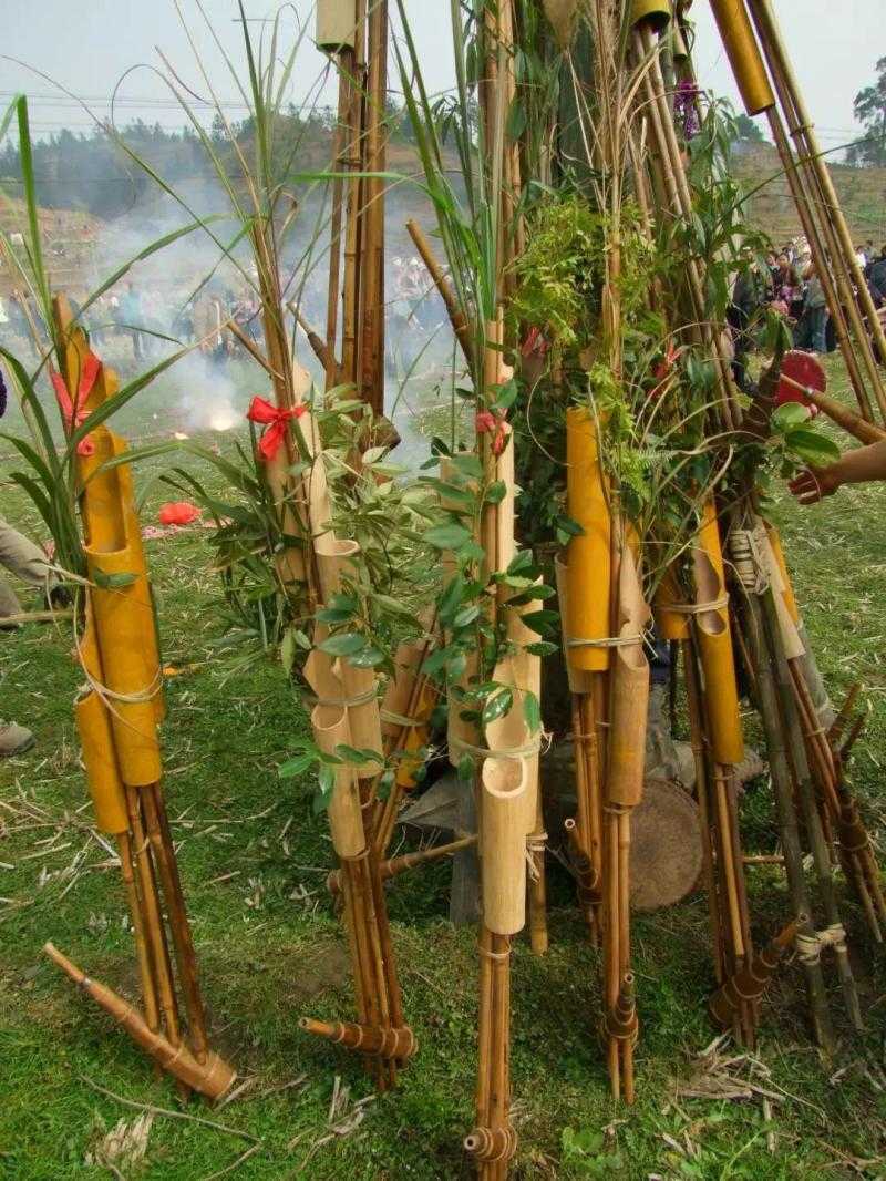 芦笙:吹芦笙是坡会最主要的活动,芦笙是苗家最喜爱的民族民间乐器之一。芦笙又叫芦管,由六根芦笙竹管组成,每根竹管开一个眼孔,竹管头的发音处安上铜片作簧,能吹六个音。经过代代相传和长期实践与不断改造,苗族人民创造了丰富的芦笙曲目,不但有独奏曲、合奏曲,还有舞曲、招亲曲、打同年曲、比赛曲等等。