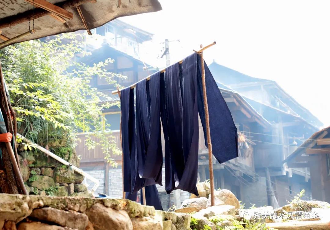 秋天是乌英苗寨妇女们制作亮布的高峰期。她们采用自己种植的蓝靛草作为原料,通过布料浸染,上浆、清洗、锤布、涂蛋清、复染、复锤、复涂鸡蛋清、加色、蒸布、晾晒等一系列复杂的工艺后,经数月甚至一年“千锤百炼”而得的亮布可以长久保持光泽,光泽越亮说明亮布手工艺的技术越好。