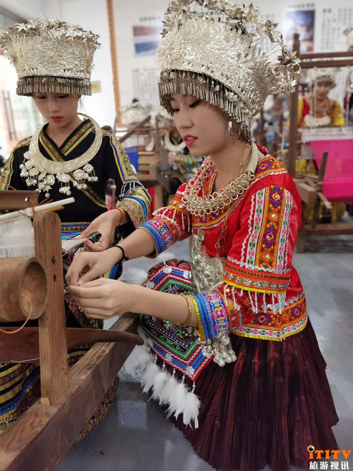 记者在“苗家小镇”的“巧娘集市”楼的“金绣球居家灵活就业示范基地”,参观了广西柳州彩云苗艺商贸有限公司承办的与广东合作项目《染·织·绣 非遗生活美术馆》。该公司的负责人李伊园是广西壮族自治区级非物质文化遗产融水苗族刺绣传承人,她介绍说,从2019年开始,已经开办了苗绣培训班,培训对象主要来自易地扶贫搬迁点和乡镇建档立卡贫困的苗族妇女;培训采取理论讲解和实际操作相结合的方式,重点对 “平绣”“锁绣”“锁链绣”等绣法进行详细解析和实际操作。培训班一般每期为期半个月,先后举办了6期,近400名妇女接受了技能培训,目前已经有80多位优秀学员与公司签约,成为专业绣娘,公司把刺绣原料发放到她们手中,让她们在家中进行“居家式”生产加工,实行按件计薪,确保她们绣得出、卖得上价、有收入,不断增强她们的自信心,实现居家就业就能脱贫增收。另一位广西壮族自治区级非物质文化遗产苗族织锦技艺项目代表性传承人、广西传统工艺孵化中心织绣技艺首席导师唐巧英告诉记者,她在“苗家小镇”走的是公益培训的路子,也收到了很好的效果,陆续吸引了各地大中学生为主的年轻人前来参加短期体验式培训活动。她表示,传统技艺需要更多有志青年通过了解产生兴趣、学习传承。