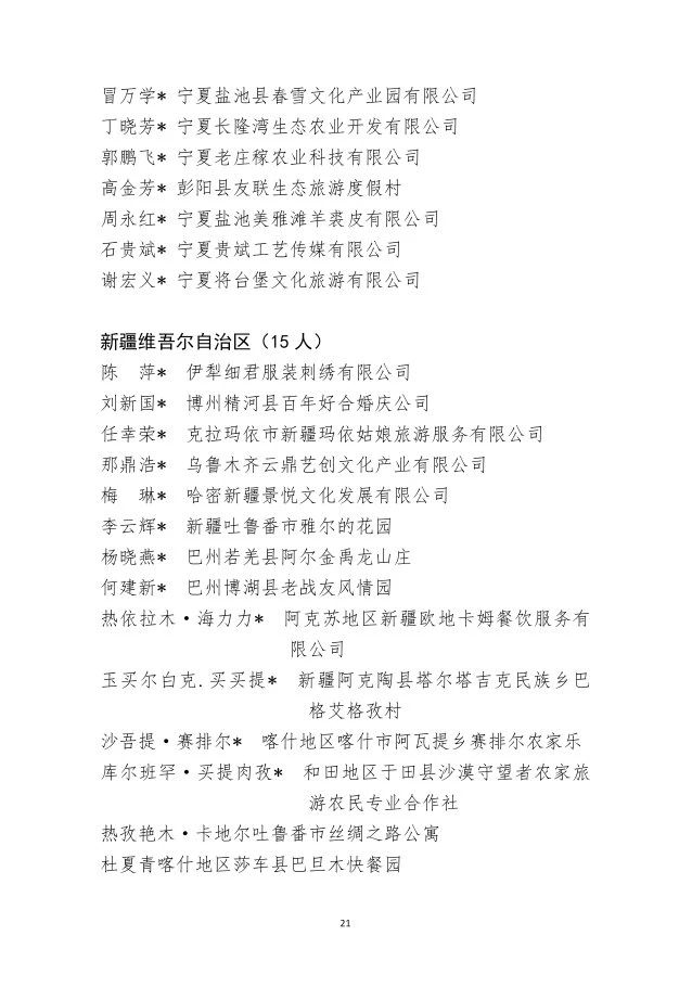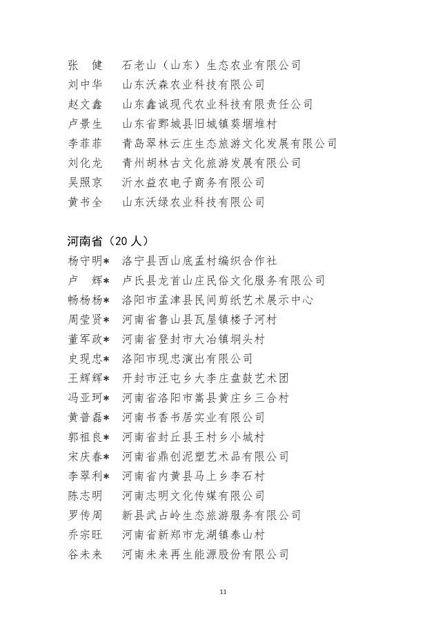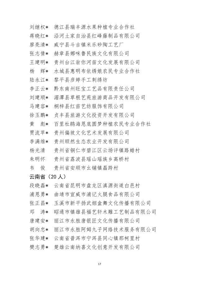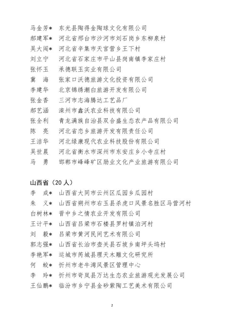近日,文化和旅游部发布《2020年度乡村文化和旅游能人支持项目入选人员名单(478人)》,
