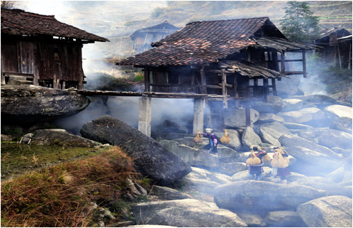 苗族吊脚楼被现代建筑学家誉为最具生态的建筑方式。它凝聚了苗族人民群众与大自然抗争的智慧和力量,散发出苗族的风俗气息、刻画了苗族文化的特色和印记。