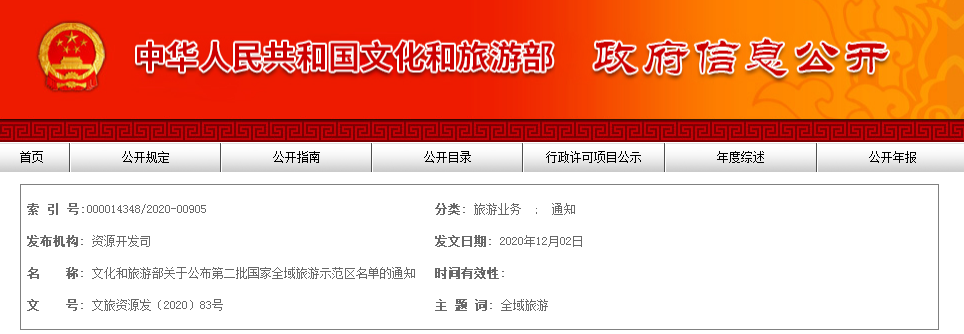 文化和旅游部关于公布第二批国家全域旅游示范区名单的通知