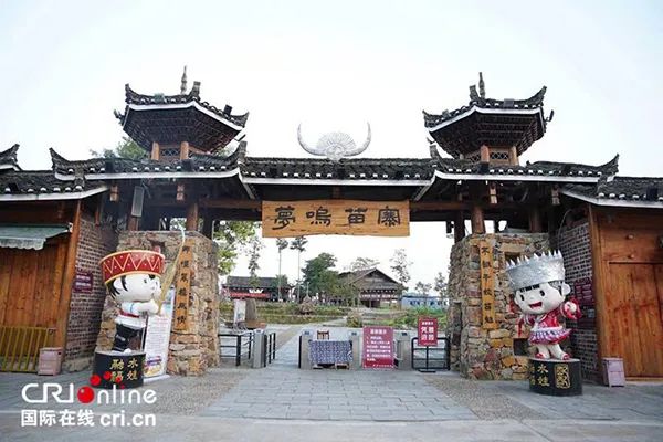 位于融水县双龙沟景区的梦呜苗寨,是融水县着力打造的旅游扶贫示范点。它以生态搬迁的方式,从大山里整体搬出苗寨木楼,在景区内还原了近百栋原生态纯木结构吊脚楼,形成景区独有的苗寨景观。