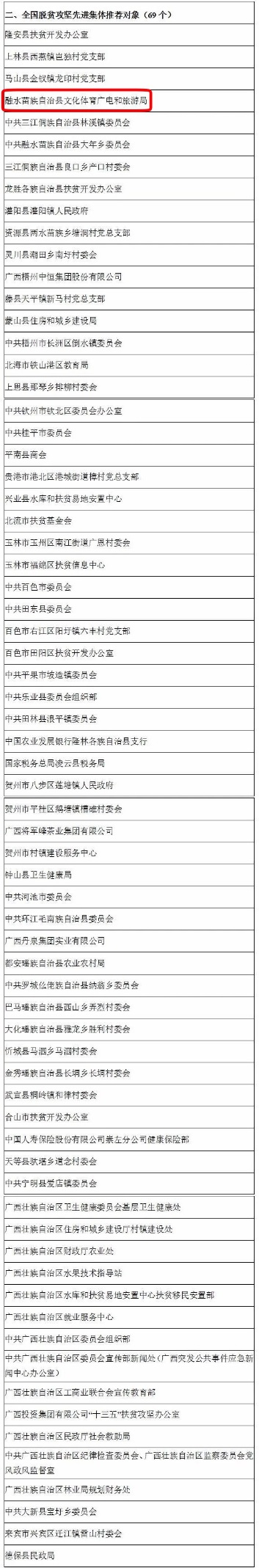 根据全国脱贫攻坚总结表彰推荐评选工作部署,现将全国脱贫攻坚总结表彰广西推荐对象名单予以公示。公示时间从2021年1月15日起,至2021年1月19日止。