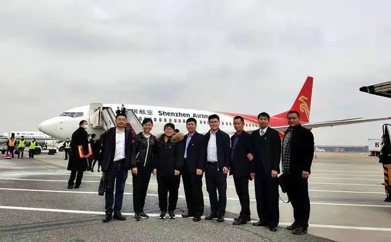 ↑柳州获得国家脱贫攻坚先进个人和集体的代表在机场合影