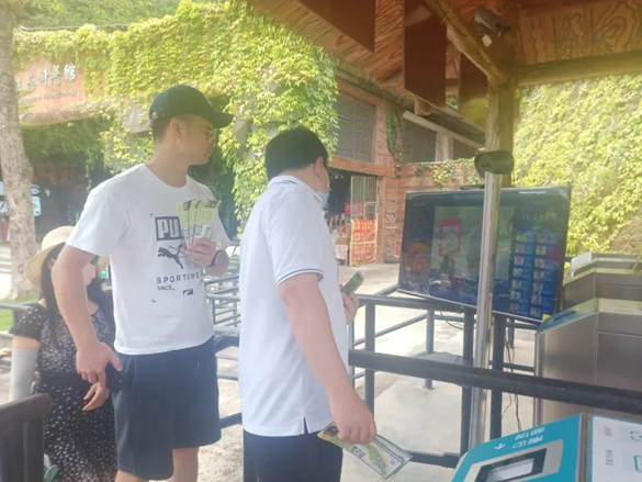 加强人员疫情监测和防控管理。所有进入景区的工作人员均需佩戴口罩。同时严格检测旅客体温,仔细检查旅客健康码。