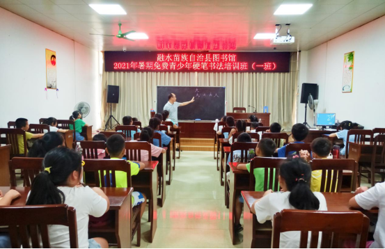 7月12日,图书馆举办了免费青少年硬笔书法培训班,2期共二十天,参加培训的学生95人。课堂上老师从最基本的坐姿、握笔方法、书写顺序、间架结构、书法门类等进行趣味讲解,对学生给予更多的笔画练习和书法欣赏,提高了学生的书写兴趣和书法水平.