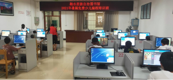 计算机编程一直被视为继口语及书写之后的“第三语言”,学习编程可以锻炼孩子的逻辑思维能力,学习能力和专注力。7月19日上午,我馆首届青少年编程基础知识和操作培训班在电子阅读室开班,有22位学生参加为期10天的上机操作学习。在编程学习中,编程的趣味性激发了学生的学习兴趣,一个学生说:“学编程也是玩游戏,只是由游戏的使用者变成游戏的开发者”。学编程,提高了孩子对电脑操作技术进一步探索的兴趣,让他们明白了程序员是怎么开发游戏的,更让他们站在一个更高的角度去看待************,避免沉迷游戏。