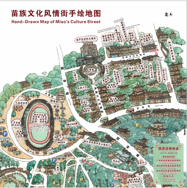 苗族文化风情作为是融水县目前最大的旅游地产项目,占地120亩,建筑面积40万平方米,已建一座四星级酒店,7万平方米的民俗旅游商业街,街区全长300多米,建筑外观古朴香淳,环境舒适,功能齐全,以经营民族餐饮、民族旅游商品等商铺为主,同时能提供优质的休闲、娱乐和购物服务,是一条民族气息浓郁与“吃、住、游、娱、购”元素突出的特色街区,业态丰富 。