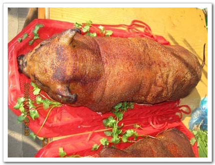 香猪肉一般有两种吃法:一种是用清水煮熟白切,蘸佐料盐水而食;另一种是整猪除毛后烘烤,称为“烤香猪”。烤幼猪称为“烤乳猪”,其味香甜,多吃不腻,是当地逢年过节的主菜,也是赠送亲朋好友的上等礼品。
