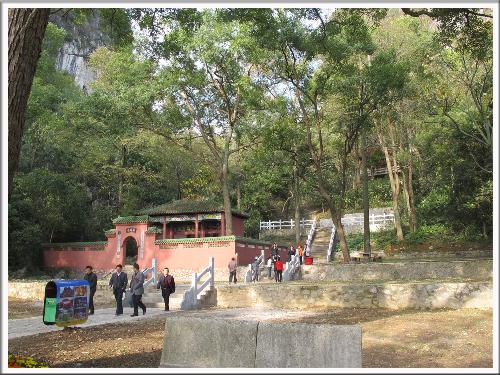 老君洞 又名“真仙岩”、“灵岩”。位于融水苗族自治县城南1.5公里处,整个景区占地10多公顷.有溶洞2个,洞口高约20米,宽约30米,纵深50米。洞内原有由钟石自然凝成高达7米多的老君像,白发银须,栩栩如生,老君洞因此得名。宋代,洞中建有真仙阁,此阁早已废毁,只留存宋,元、明、清、民国碑刻136方。这些石刻有题记、诗文、诗赋、卜辞、书榜、图像等,字体则篆、棣、真、草均含。形式多样,内容丰富,为历代学者所重视。明代地理学家、旅行家徐弘祖(徐霞客)到融水,在真仙岩住了长达13天之久,其主要活动就拓制收集洞中的石刻作品。清代著名金学家王昶撰辑《金石萃编》、陆增祥撰辑《八琼室金石补正》及名宦,学者谢启昆编撰《粤西金石略》,均对真仙岩石刻有所著录。据嘉庆《广西通志》卷二百六十引明人曹学佺《舆地名胜志》称:“灵岩山又名老君洞,宋咸平中改名为真仙岩,颁太宗御书百二十轴藏于内”,今存“瑞云、西江、精忠、颐堂”八字四石,即为当时真仙阁所藏作品。