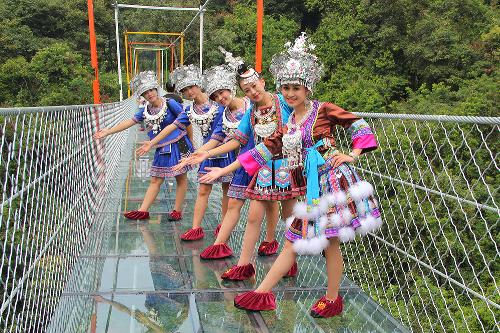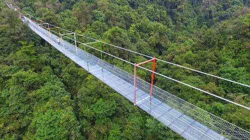双龙沟的玻璃桥(表白桥)是广西第一条悬索玻璃桥,总长199.9米,高52.0米,象征着男女间只要大胆表白,勇敢跨越“我爱你”,两人相爱就可长长久久。