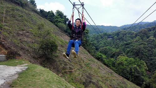 高空滑索简介:融水双龙沟原始森林景区内‘滑索’是广西目前跨度最长的高空滑索。索道全长528米,高空落差45米,相当于15层楼高,设有3组滑道,3人可同时自由滑行,至上而下到达终点约50秒的时间,是一项具有挑战性、刺激性、参与性、娱乐性为一体的森林高空索道,具有惊、奇、险的高空滑翔快感;体验天马行空,小鸟林中翱翔的感觉;享受速度的激情与有惊无险的轻松快乐;是原始交通工具与现代高运动为一体的完美结合!
