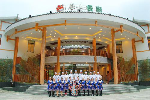 双龙沟梦呜餐厅主打民族特色风味餐,游客在餐厅用餐可以观看苗族芦笙歌舞表演,品尝特色风味美食,还可以体验到苗族“呀——呜”喊酒习俗,和“高山流水”敬酒,来双龙沟原始森林度假区旅游一定给你留下美好的回忆。