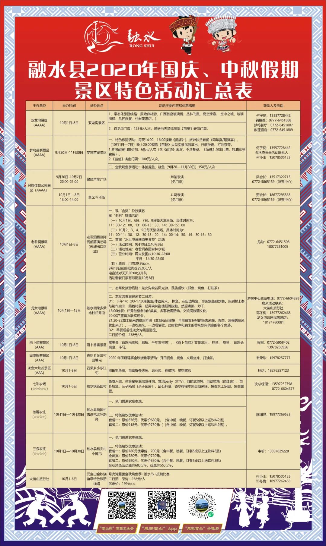 游客中心0772-6604328、邓冬梅(扁米活动)18977262468、龙女沟云居民宿18174780081