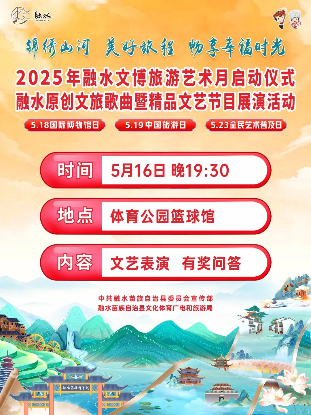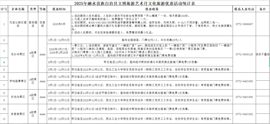 在这里,历史文化爱好者可以探寻文博魅力,旅游达人能够饱览自然风光,艺术爱好者更可尽情欣赏灵动的舞蹈表演。无论您钟情于哪一种文化体验,都能在融水文博旅游艺术月中,邂逅专属的欢乐与惊喜。这份诚意满满的活动指南已为您整理完毕,快收藏起来,一同解锁这场不容错过的文旅艺术之旅吧!