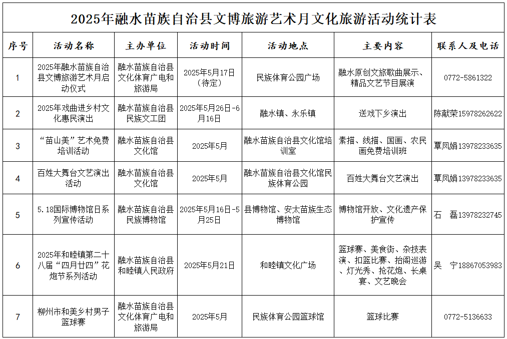 来源:融水苗族自治县文化体育广电和旅游局